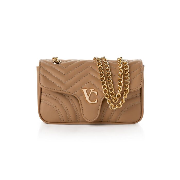 - Camelkleurige schoudertas van 100% polyvinylleer