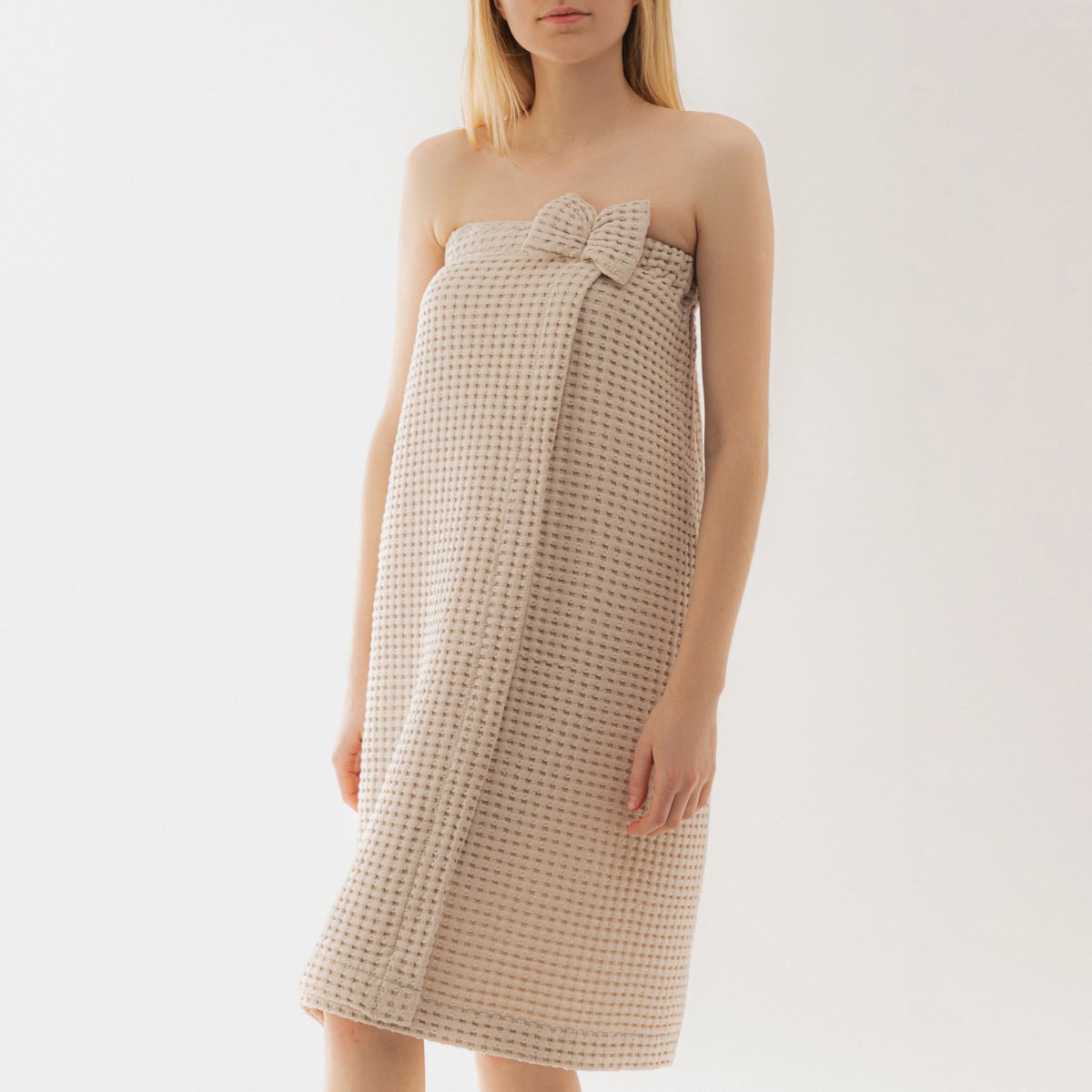 Ręcznik VAFFEL wyróżnia się funkcjonalnością i estetyką. Zmniejsza ryzyko ześlizgnięcia się, co sprawia, że doskonale nadaje się na basen, do parku wodnego oraz na wizyty w spa. Górny pas ręcznika ozdobiony jest kokardą, co dodaje mu uroku i sprawia, że jest bardziej stylowy.