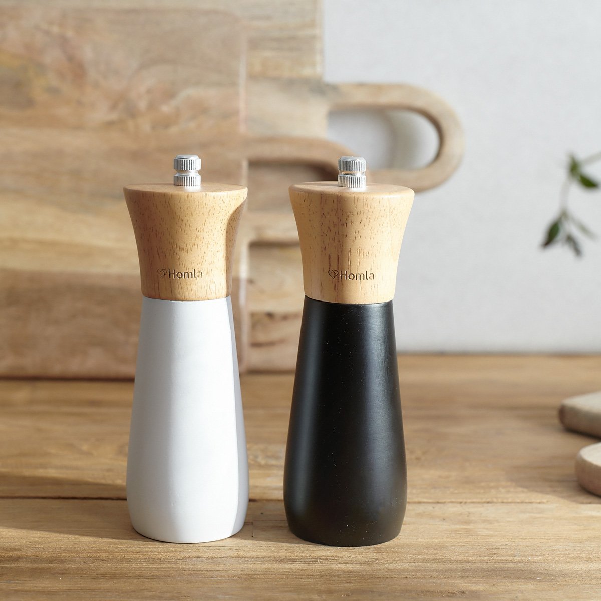De RUBBY zwarte en witte mill set van de BASIC lijn zijn essentiële producten voor iedere keuken. Zout en peper zijn al jarenlang onmisbare kruiden in elk gerecht, daarom is het belangrijk om te zorgen voor hun versheid zodat we de kwaliteit van onze gerechten kunnen optimaliseren. Het kleurenpalet van dit product sluit naadloos aan bij minimalistische, industriële of Scandinavische interieurstijlen.