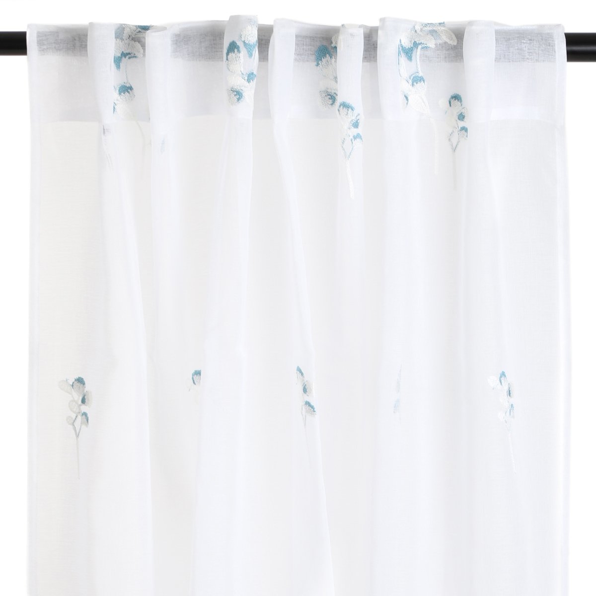 De lichtgewicht en luchtige HOMLA ALBIA voile gordijn zal uw interieur perfect opfleuren, met een frisse lente-uitstraling. De witte achtergrond is versierd met charmant, zorgvuldig gemaakte borduursels in de vorm van witte en blauwe bloemen. Wanneer het in het raam hangt, wordt het een elegante decoratie die u beschermt tegen de blikken van voorbijgangers, en wanneer u het raam opent, zal het prachtig wapperen in de wind.