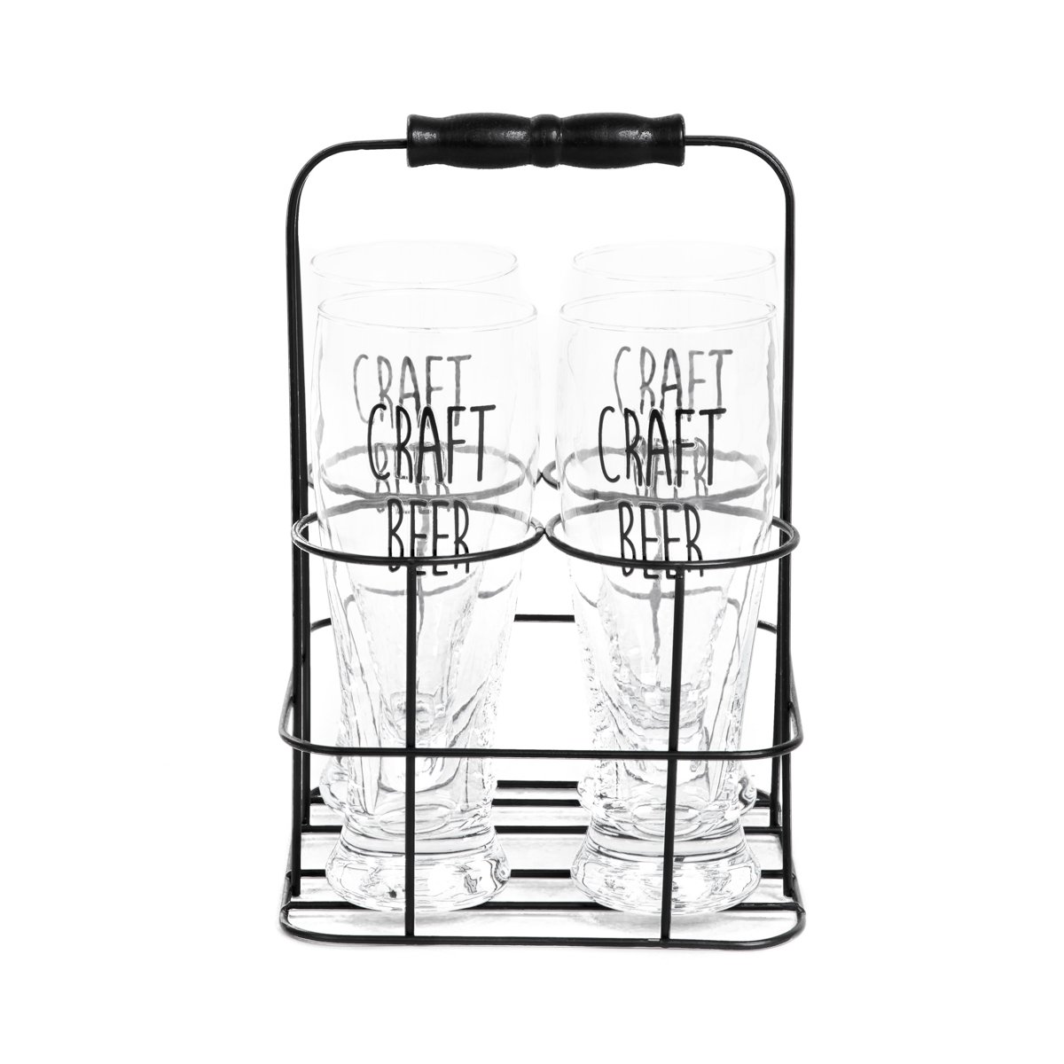 HOMLA | Bier Set | RAYA | met metalen standaard | 0,4 l | 4 stuks