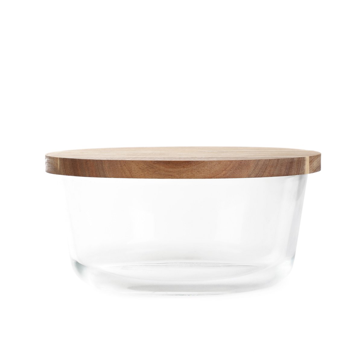 HOMLA | MAIRA Glass Container | 19x10 cm | Wooden Lid
