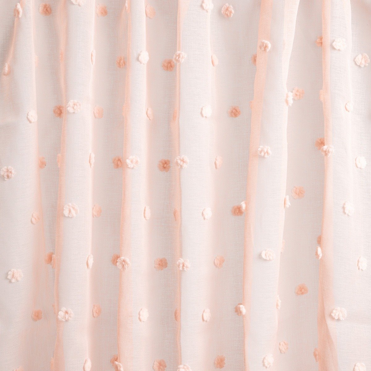 De BELMONTE-gordijn is een romantisch interieuraccessoire dat de zachtheid van de stof combineert met de charmante touch van zachte pompoms. De poederroze tint brengt een gezellige sfeer in de ruimte zonder de inrichting te overweldigen. De lichtdoorlatende stof verspert het licht prachtig, waardoor er een warme en harmonieuze sfeer in de kamer ontstaat.