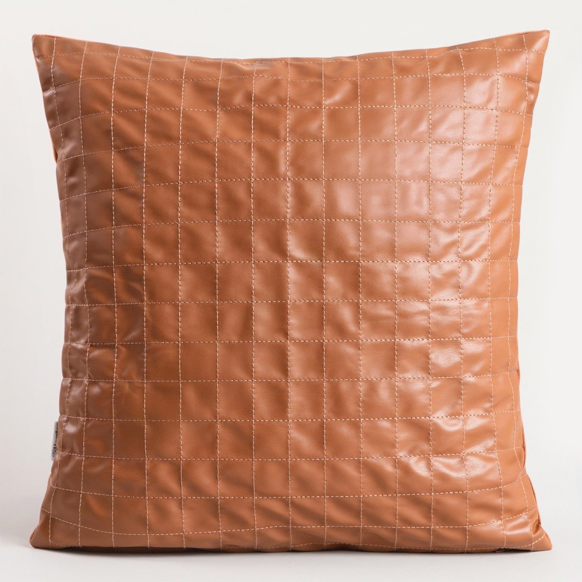 HOMLA | Pillowcase | KATAD | Eco-leather with Decorative Stitching Brown | 45x45cm