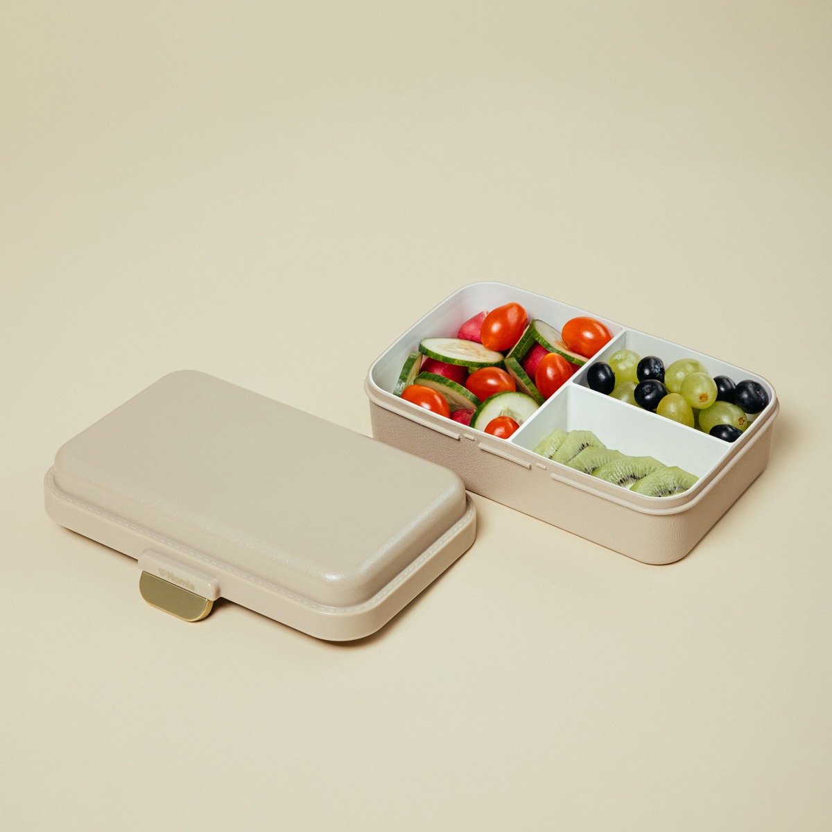 Zoek je een praktische en esthetische oplossing voor het opslaan van maaltijden buitenshuis? De lunchbox TORRONE in een subtiele, beige tint is de ideale keuze. De vierkante vorm vergemakkelijkt het inpakken en opslaan in je tas, terwijl de neutrale kleur bij elke outfit past.