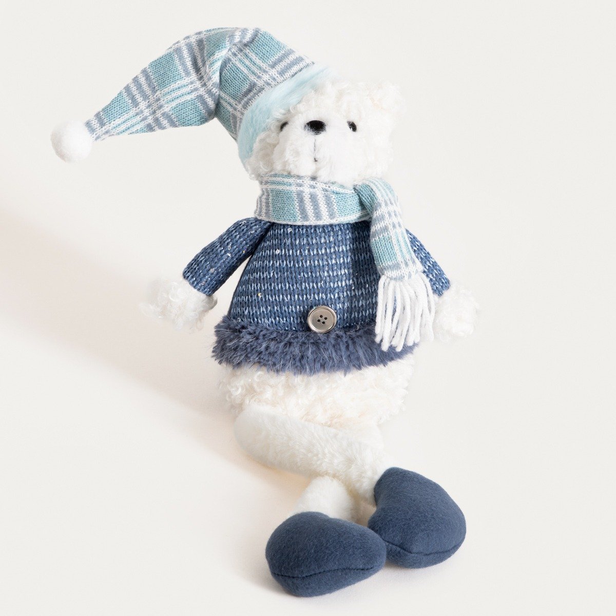 Laat de magie van Kerstmis jouw huis binnentrekken - de Kerstgnome Mr Teddy Bear in blauwe kledij is de perfecte aanvulling op je kerstdecoraties. Gekleed in een gebreide trui met een knop, een schattige cap en een sjaal, is de teddybeer klaar om je huis te versieren op koude winterdagen, en brengt hij een gezellige kerstsfeer in je interieur.