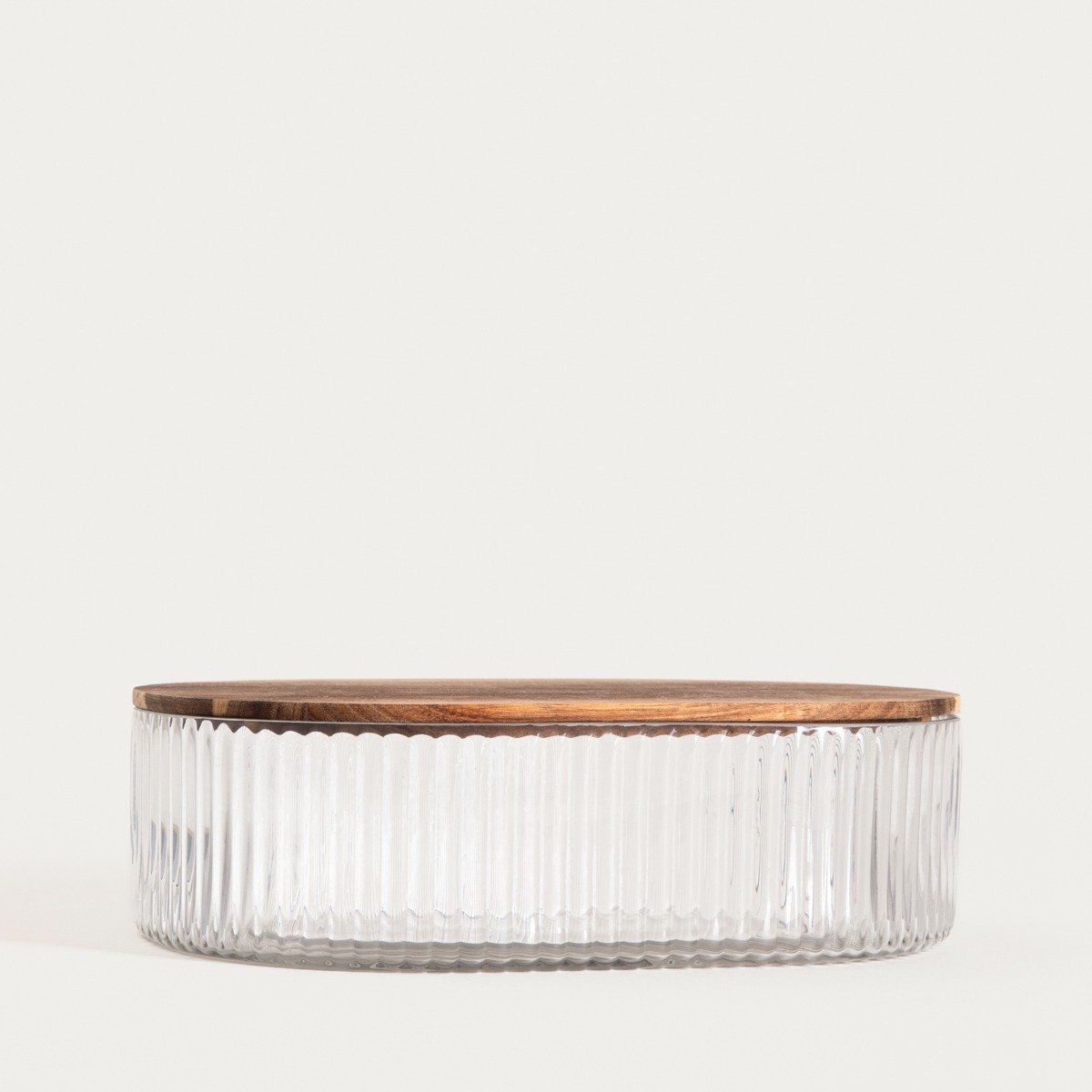 HOMLA | Container met Acacia Deksel | 25x18 cm | Transparant Glas
