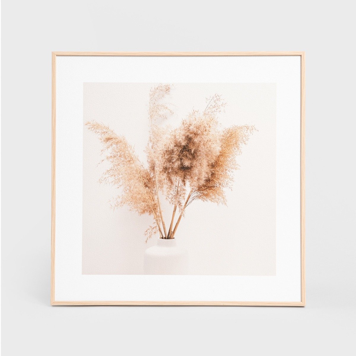Het schilderij benadrukt een minimalistisch ontwerp, waarbij de schoonheid van het gedroogde boeket centraal staat. De rustige kleuren en eenvoudige vormen creëren een rustig en elegant effect, ideaal voor verschillende interieurstijlen.