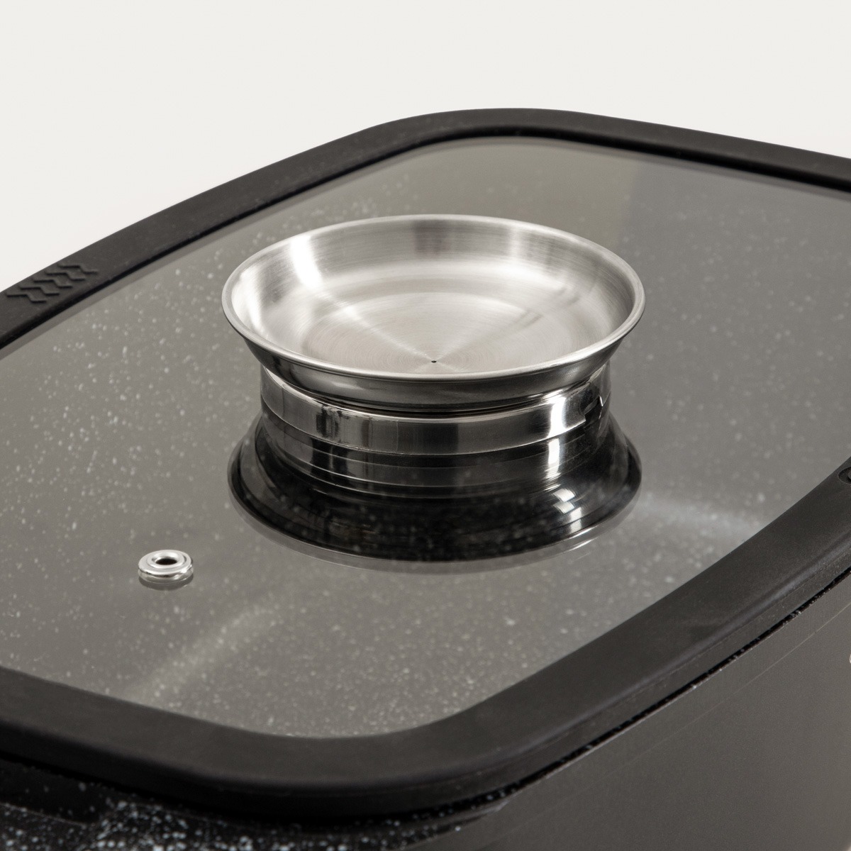 Deze kookpot is ontworpen met een strak en functioneel uiterlijk. Het deksel sluit goed af, wat zorgt voor een goede verdeling van warmte en vocht tijdens het koken. Deze pot is geschikt voor gebruik op alle soorten kookplaten, met uitzondering van de magnetron, waardoor hij een veelzijdige toevoeging is aan uw keukenuitrusting.