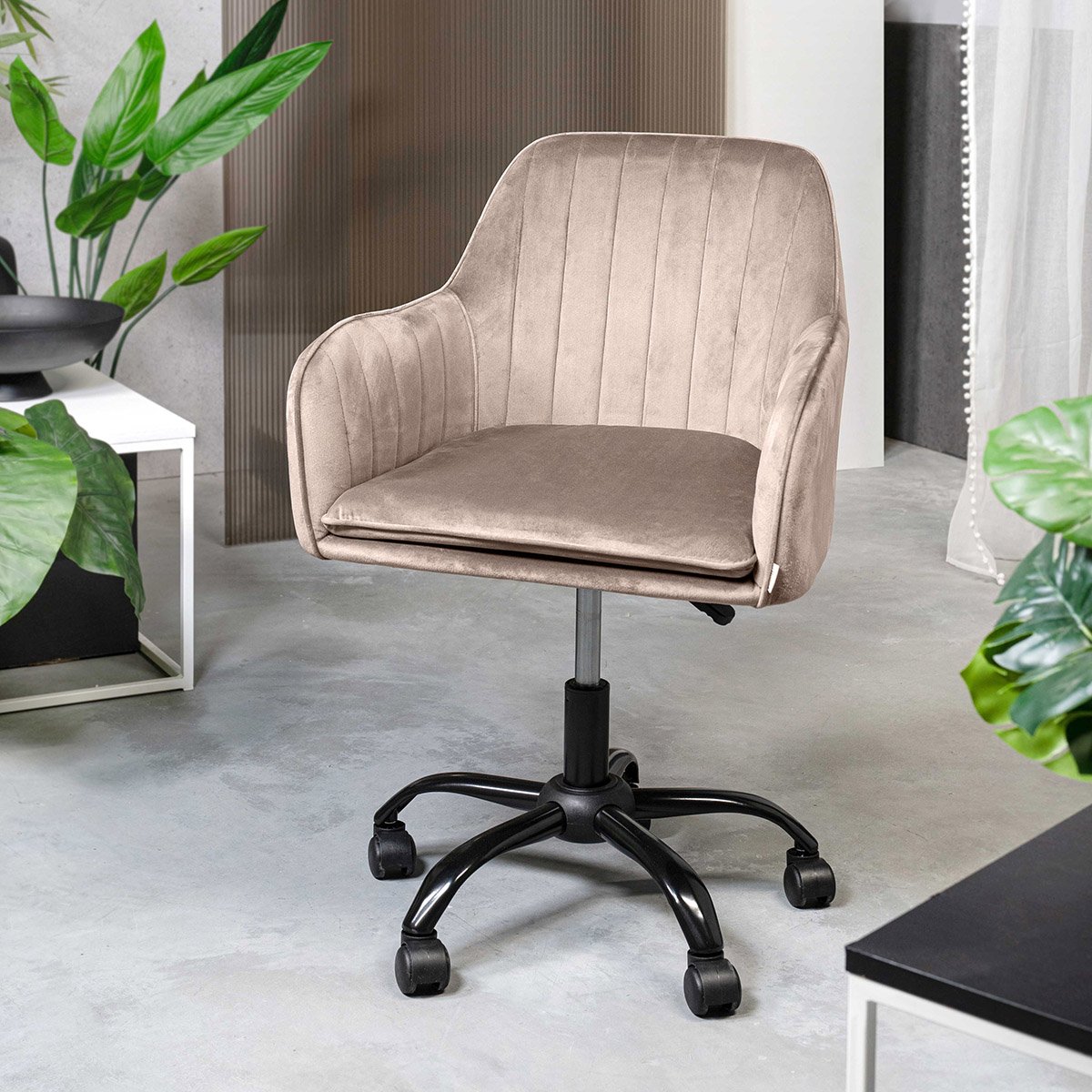 HOMLA | Chair | TEILL | Velour Swivel Beige | 55x54.5x80-90cm