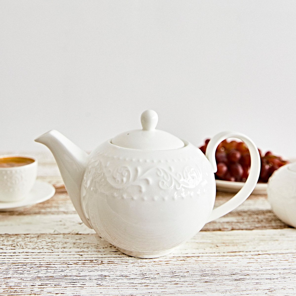 De HOMLA SYLIA jug is een prachtig porseleinen vat dat is versierd met een convex ornament. Dit maakt het perfect om koffie of thee te bereiden en elegant aan tafel te serveren. Met een capaciteit van 1 liter biedt deze jug voldoende voor meerdere koppen. Het deksel en de wanden van de jug houden de drank langer warm, zodat u zonder moeite extra porties kunt inschenken.