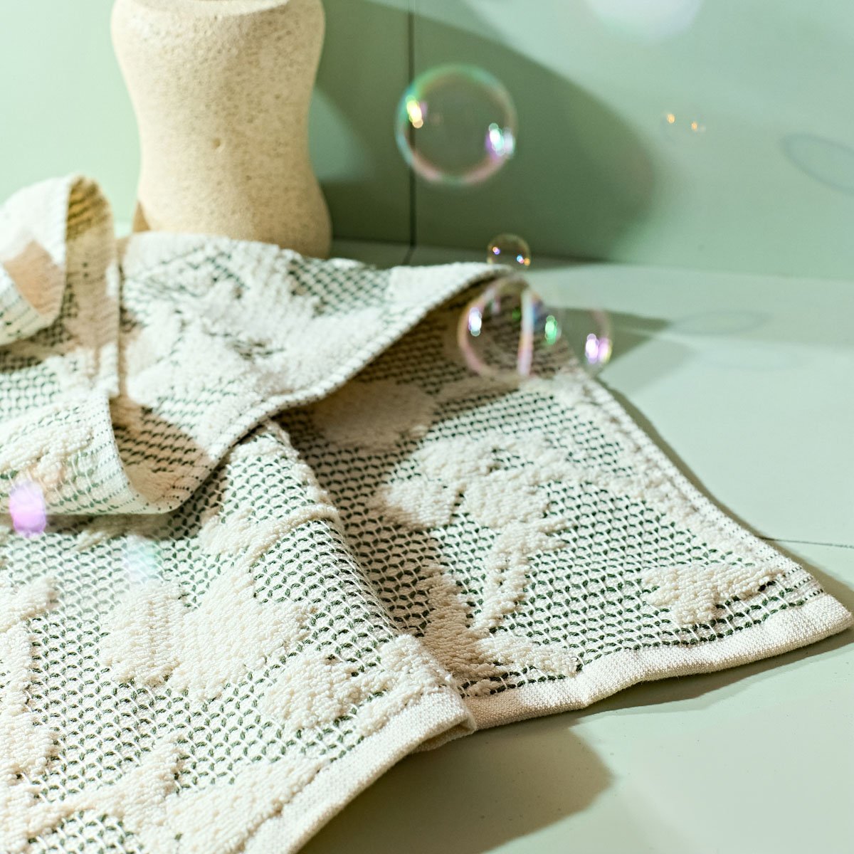 Omring jezelf elke dag met schoonheid met de MIRRI handdoek. Het subtiele bloemenpatroon in neutrale tinten maakt het niet alleen een prachtige, maar ook een veelzijdige aanvulling op elke badkamer. Wat de stijl ook is, het brengt een lucht van natuur en elegantie in het interieur, waardoor elke bad of douche een luxueuze ritueel wordt.