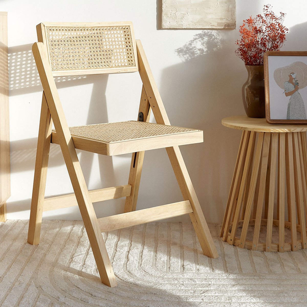 HOMLA | Folding Chair | Wood & Natural Rattan | 46x52x80 cm