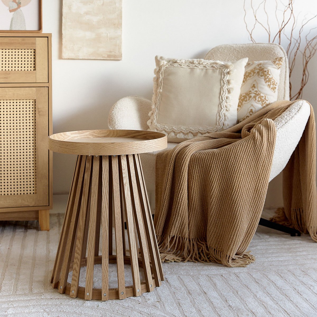 De JATOBA bijzettafel is perfect voor verschillende doeleinden. Je kunt het gebruiken in de woonkamer, waar het een ideale plek zal zijn om een kop thee neer te zetten terwijl je ontspant met je favoriete boek. Het kan ook dienen als een plek om een vaas met bloemen en geurige kaarsen tentoon te stellen, waarvan de geur lange avonden aangenaam zal maken. Je kunt het ook in de slaapkamer plaatsen, waar het als nachttafeltje zal dienen, of in de gang.