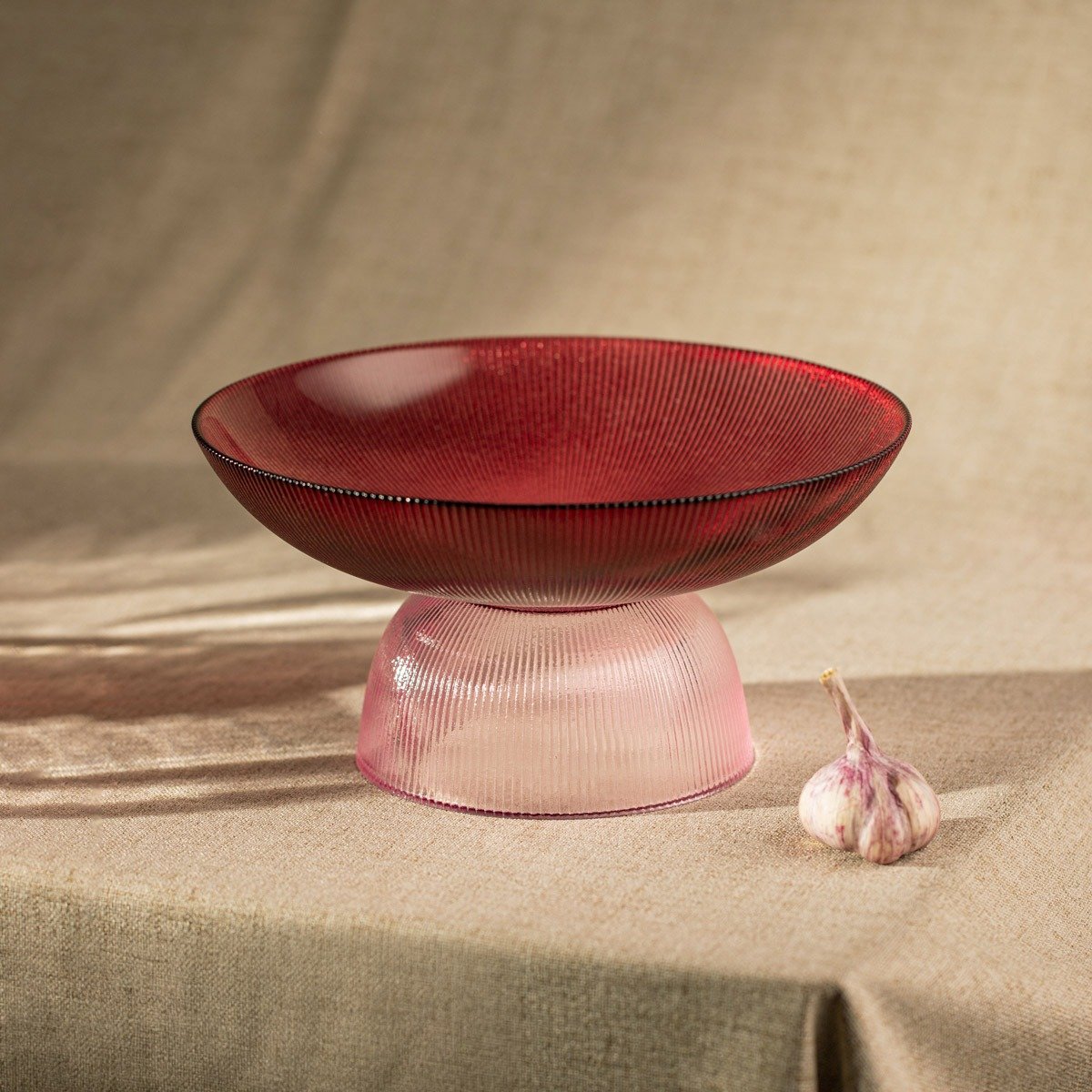 The MEGALO platter is a utilitarian object and at the same time a wonderful example of artistic design. Placed in the kitchen, dining room or on an elegantly set table during a festive lunch or dinner, it will be one of the most distinctive design elements. The fluted decorative glass impresses with its gradient colouring, harmoniously shifting from delicate pink to deep maroon.