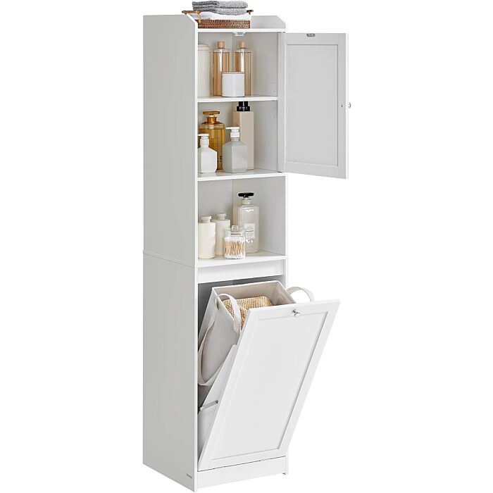 Hoppa! Badkamerkast | 40 x 40 x 170 cm | Wolkenwit | MDF en Polyesterweefsel