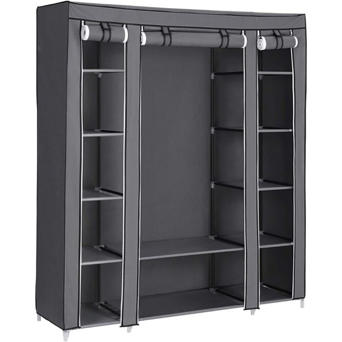 - Inclusief ophangstang, 12 legplanken en niet-geweven stoffen bekleding met rits en klittenbandsluiting