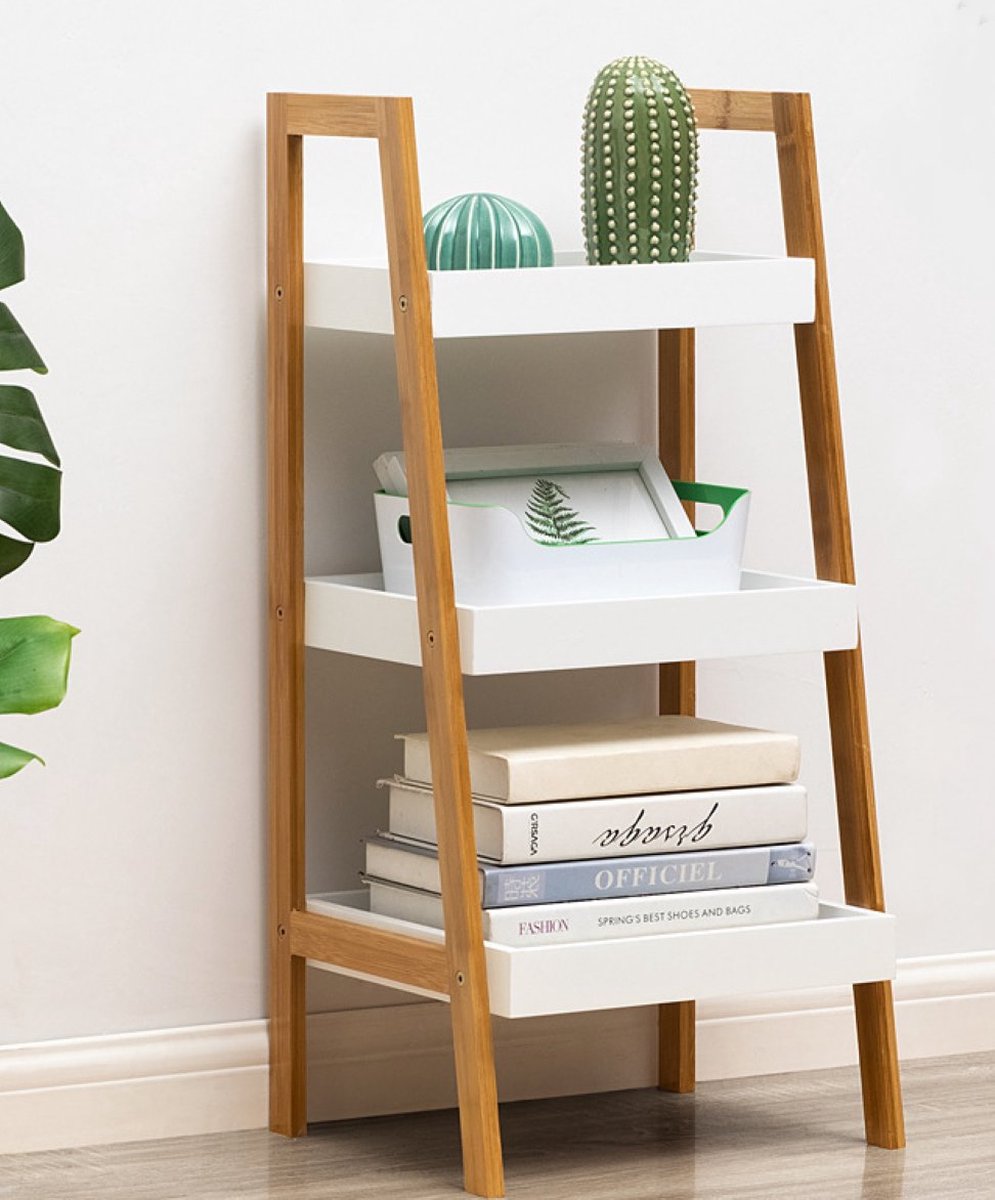 Het wandrek heeft een afmeting van ongeveer 32 cm breed, 30 cm diep en 75 cm hoog, waardoor het een ideale keuze is voor zowel kleine als grote ruimtes. Het gebruik van hoogwaardige materialen zoals bamboe en MDF zorgt voor stevigheid en duurzaamheid, terwijl het ook een lichte en moderne uitstraling behoudt.