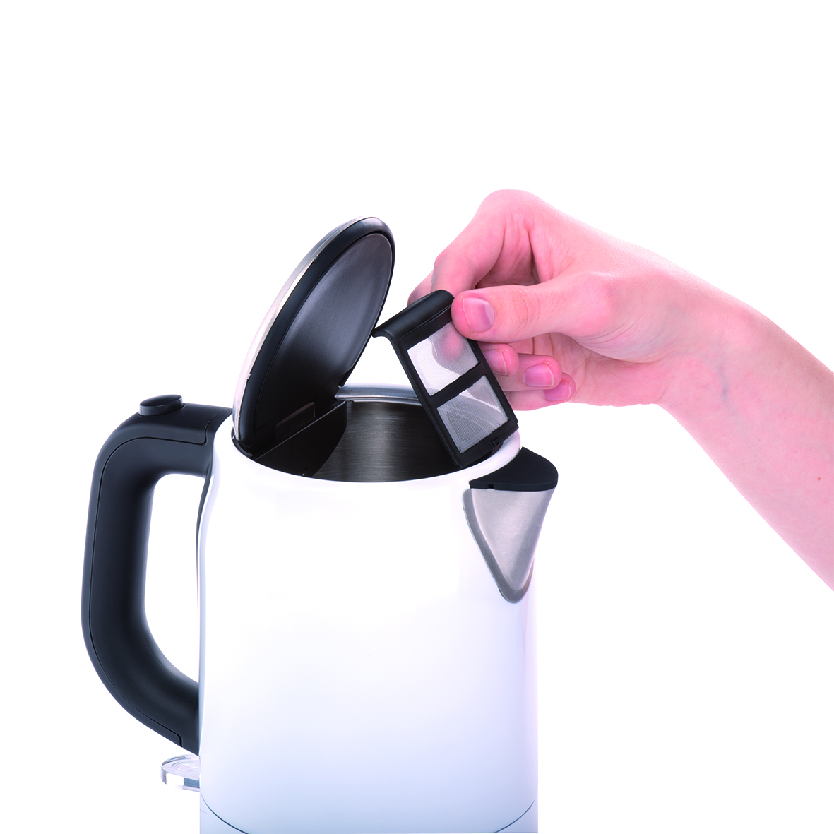 De waterkoker heeft een ruime inhoud van 1,7 liter, perfect voor het bereiden van meerdere koppen thee of koffie. Gemaakt van hoogwaardig roestvrij staal is deze waterkoker niet alleen duurzaam maar ook gemakkelijk te reinigen en bestand tegen corrosie.