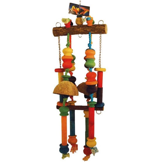 Deze papegaaienspeelhanger is perfect voor gebruik in het vogelverblijf of gewoon als extra speelelement in jouw huis. Het biedt je papegaai of kaketoe een plek om te klimmen, spelen en zijn natuurlijke gedrag te uiten. De kleurrijke blokken helpen ook om de nieuwsgierigheid van je huisdier te stimuleren en verveling te verminderen.