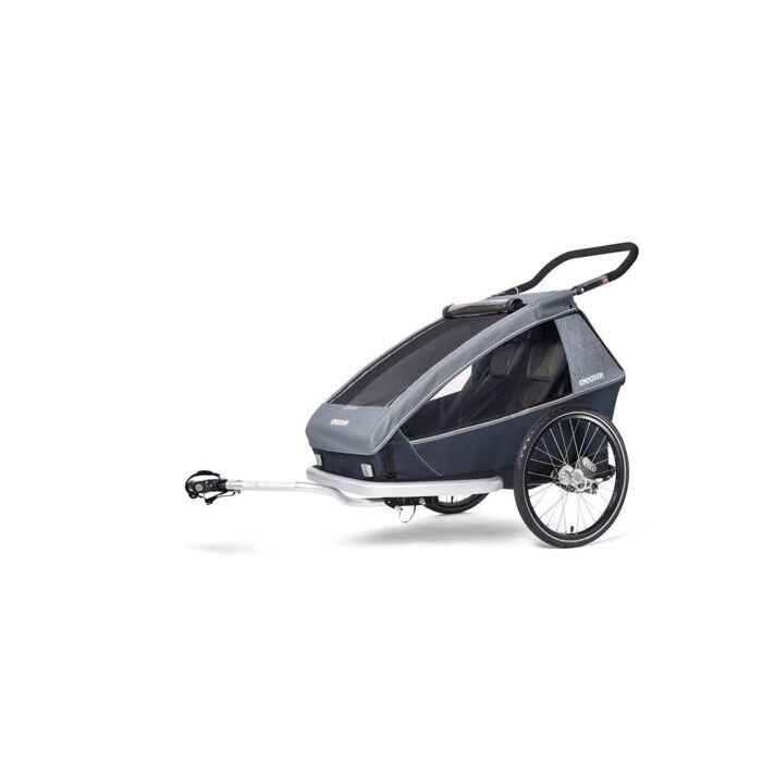- Kinderfietskar met twee zitplaatsen. 2-in-1: inclusief fiets- en buggyset. Met Croozer AirPad®-ophanging.