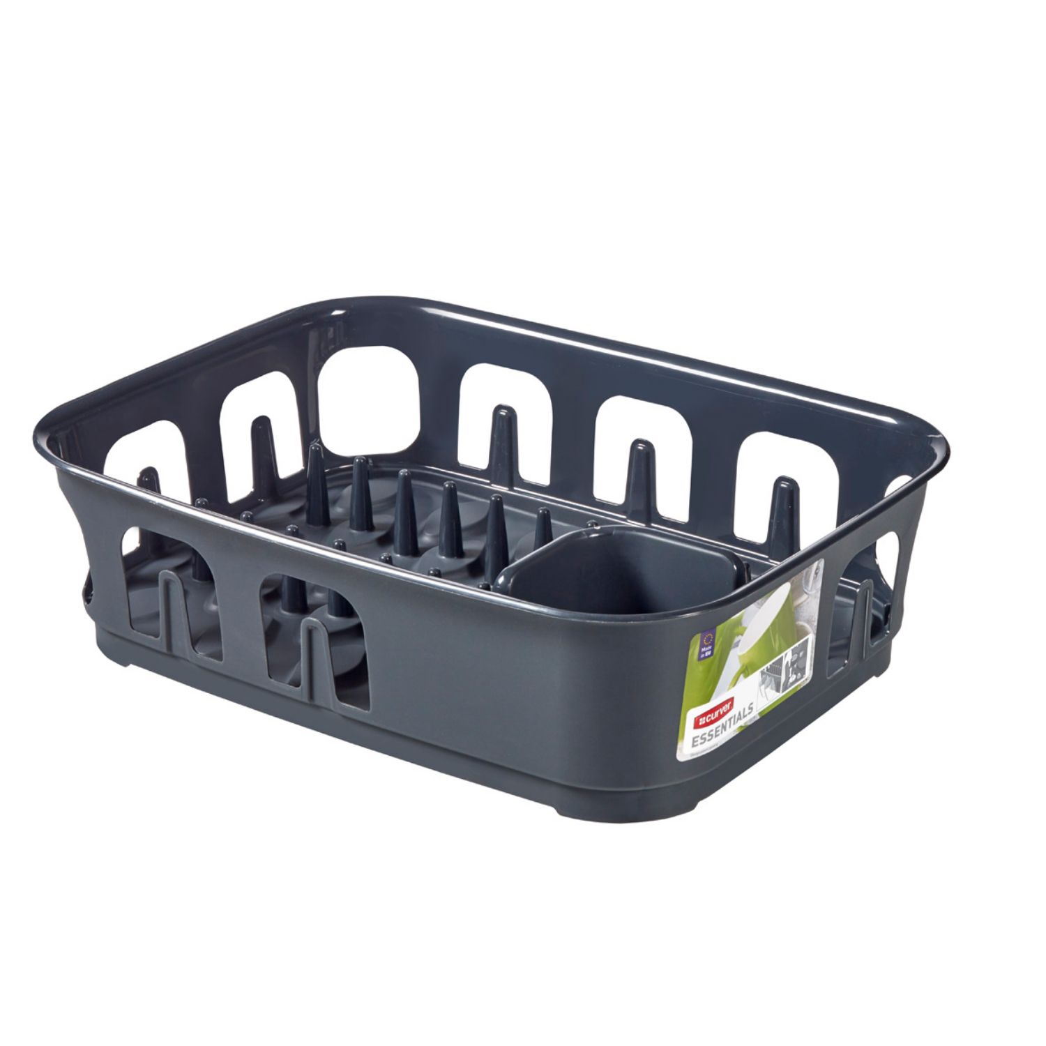 Het afdruiprek is compact van formaat en gemaakt van stevig kunststof in een elegante antraciet kleur.