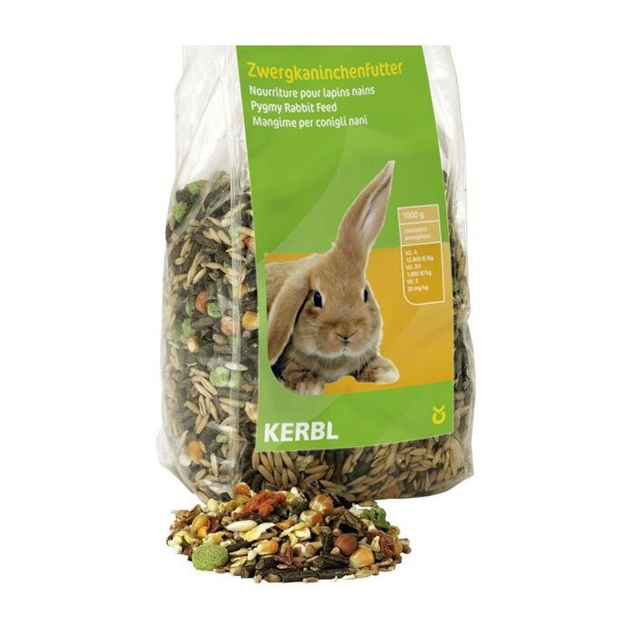 Volledig droogvoer voor dwergkonijnen met alle essentiële mineralen, vitaminen en sporenelementen. Samen met water en hooi vormt dit voer de complete basisvoeding voor uw konijn.