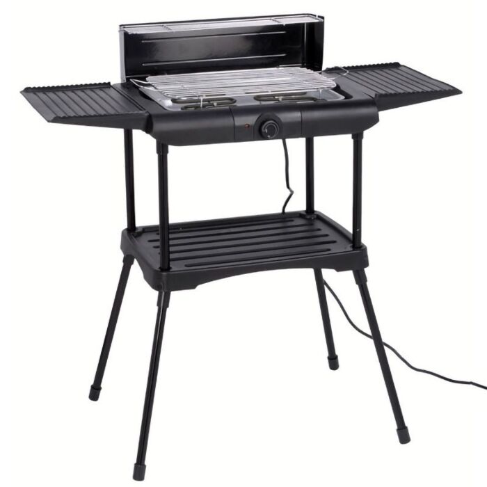 Excellent Electrics Elektrische barbecue (staand model) biedt een praktische oplossing voor wie van barbecueën houdt, zonder de rommel van houtskool of gas. Het toestel is voorzien van twee handige zijtafels die extra ruimte bieden voor het bereiden van voedsel en het plaatsen van accessoires. Dankzij het extra plateau op de voet heb je altijd voldoende ruimte voor je benodigdheden.