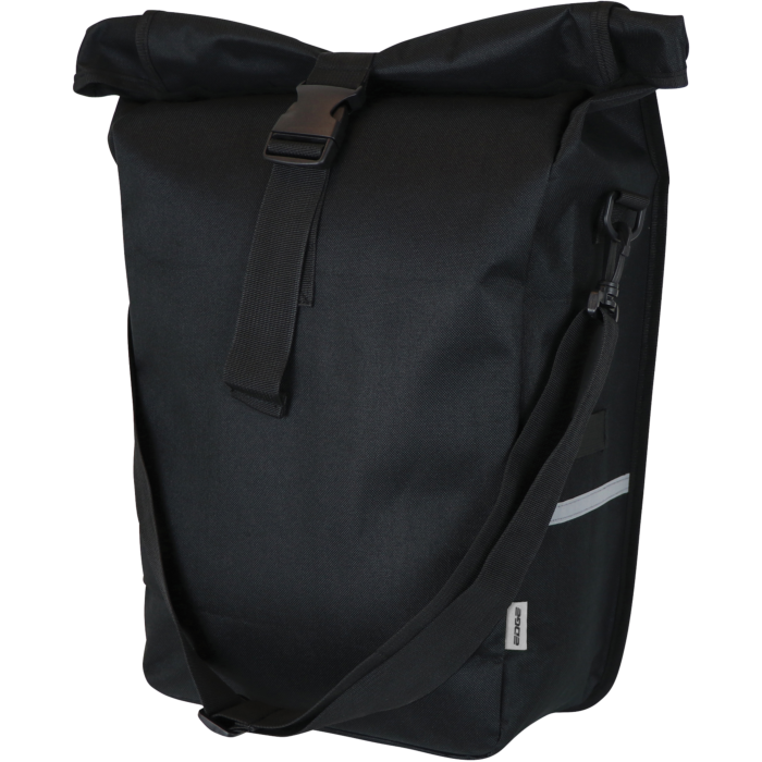 De Edge fietstas is ontworpen met gebruikersgemak in gedachten. De tas kan eenvoudig aan de bagagedrager worden bevestigd met clips aan de achterzijde, en met één handbeweging is de tas ook weer van de drager te halen. De hermetische rolsluiting zorgt voor een veilige afsluiting van de inhoud, terwijl de verstelbare klik- en klittenbandsluiting eenvoudig te bedienen is.