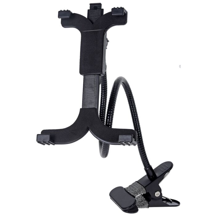 Met een flexibele stang van 57 cm geef je je tablet de juiste hoek en hoogte. De klem kan een gewicht tot 510 gram aan en is geschikt voor tablets tot 24 cm breed. Het strakke zwarte design past naadloos in elk interieur.