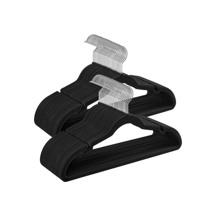 Hoppa! | Fluwelen Hangers | Antislip, Schouderinkepingen, Broekstang | 50 Stuks | Klassiek Zwart CRF029B05