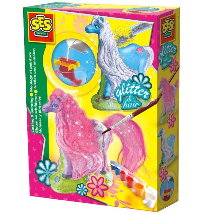 De SES Gips Gieten Paard Met Manen is een creatieve gietset waarmee kinderen hun eigen gedetailleerde paard kunnen maken. Dit leuke knutselproject is perfect voor kinderen die van creatief bezig zijn houden. Met deze set kunnen kinderen hun artistieke vaardigheden ontwikkelen terwijl ze genieten van het gieten en decoreren van hun eigen paardfiguur.