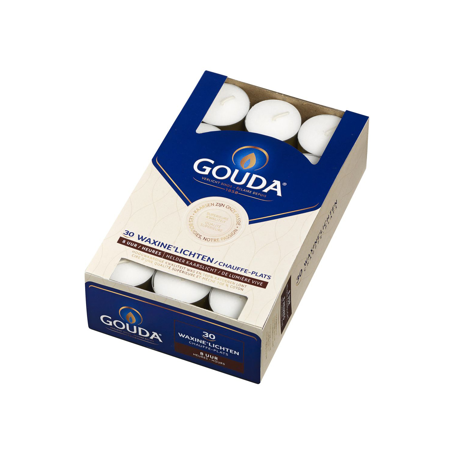 Gouda theelichten – 30 stuks, wit, met een brandduur van 8 uur