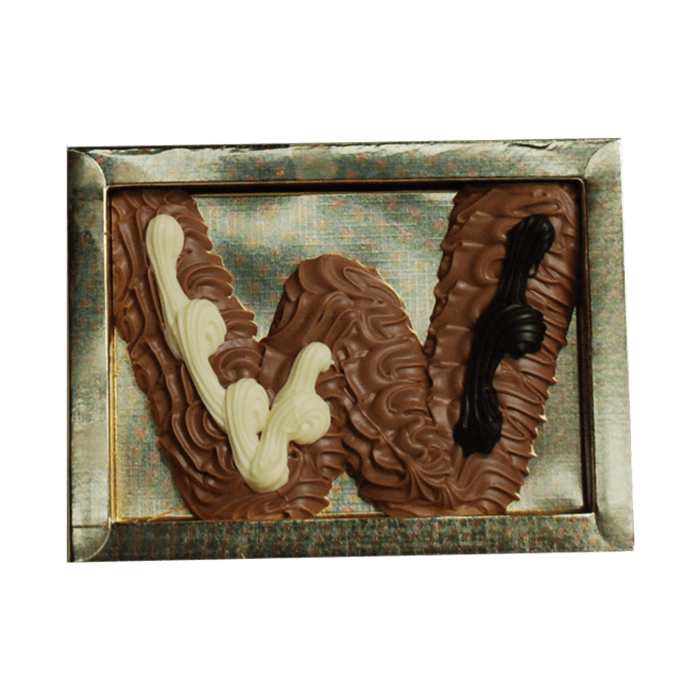 - Ambachtelijke melkchocoladeletter in de vorm van de letter W