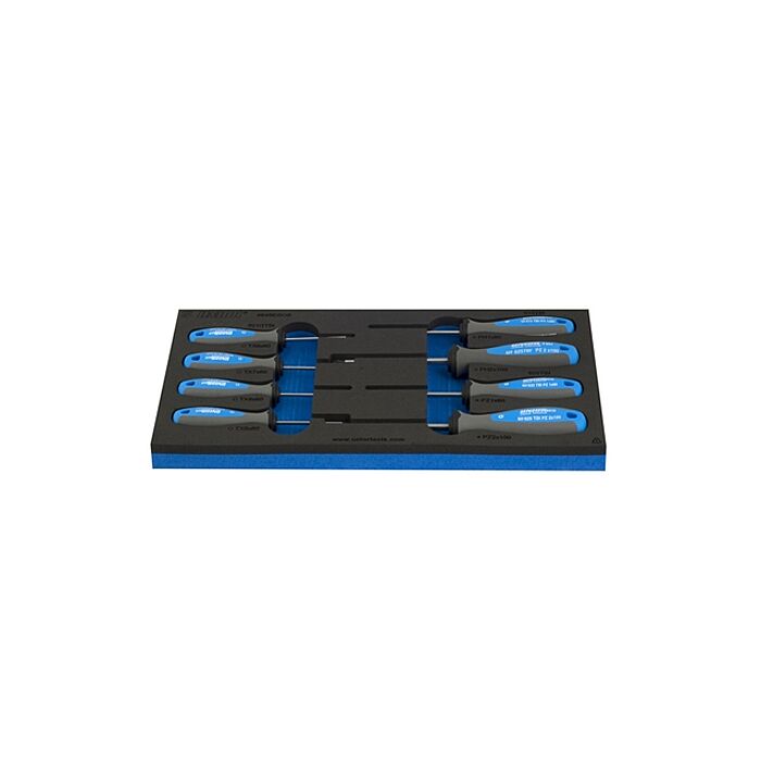 Deze schroevendraaierset is ontworpen voor polyvalent gebruik, of het nu gaat om het monteren of demonteren van verschillende soorten bevestigingen. De inlay zorgt ervoor dat de schroevendraaiers goed gepositioneerd zijn, zodat u ze snel kunt pakken en weer terug kunt plaatsen.