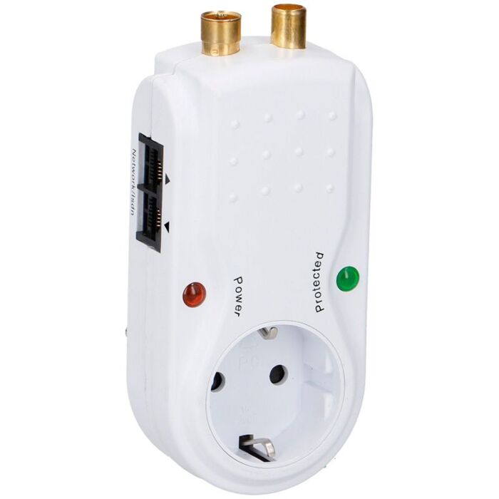 De DSS-DS06668 biedt bescherming tot 6 kV met een spanningsstoot van maximaal 1,5 kV. Hij is uitgerust met 2 coaxiale TV-aansluitingen, 2 tel/fax/modempoorten (RJ11) en 2 netwerkpoorten (RJ45), wat veelzijdige aansluitmogelijkheden garandeert voor al uw apparaten.