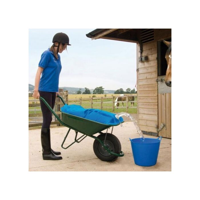Deze H2Go Bag is de eenvoudigste manier om grote hoeveelheden water stabiel en morsvrij in een kruiwagen te verplaatsen. Ideaal voor wedstrijden, stallen, weiden, tuinen of andere plekken waar u met een slang niet kunt komen.