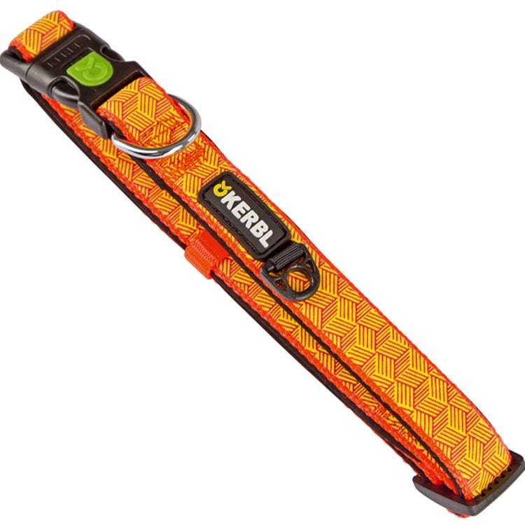 De halsband is traploos verstelbaar en onderlegd met neopreen voor extra draagcomfort. Voorzien van extra oogje om een lampje of hondenpenning aan te hangen.