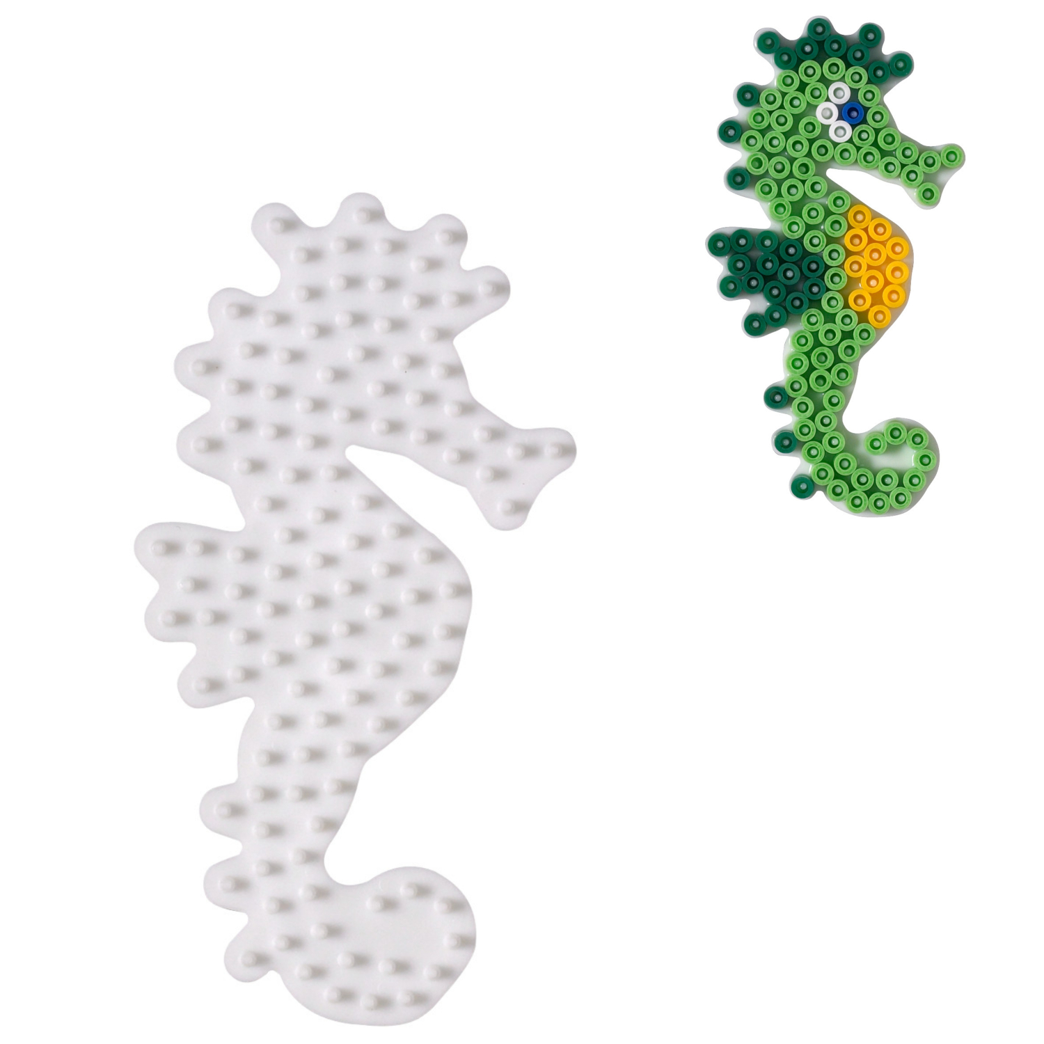 De Hama Strijkkralen Grondplaat in de vorm van een zeepaardje biedt een perfecte basis voor het creëren van kleurrijke en unieke ontwerpen met Hama strijkkralen. Deze grondplaat is ontworpen om kinderen te helpen hun creativiteit te uiten en hun fijne motoriek te ontwikkelen terwijl ze plezier hebben met knutselen.