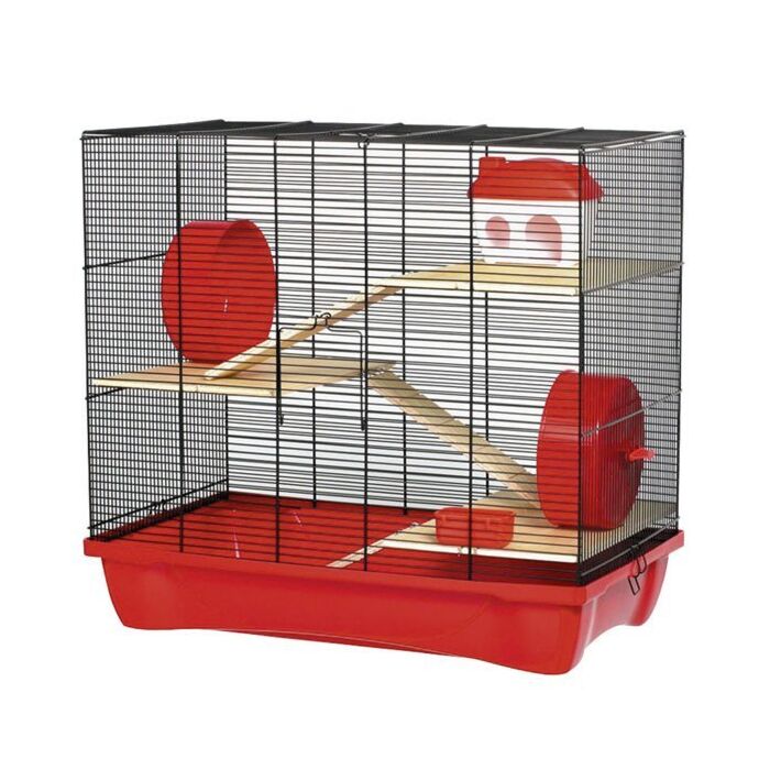 De hamsterkooi Glee is de perfecte kooi voor het houden van één of meerdere hamsters. Deze kooi heeft drie verdiepingen en is voorzien van alle gemakken om te spelen, te slapen, te klimmen en te sporten.