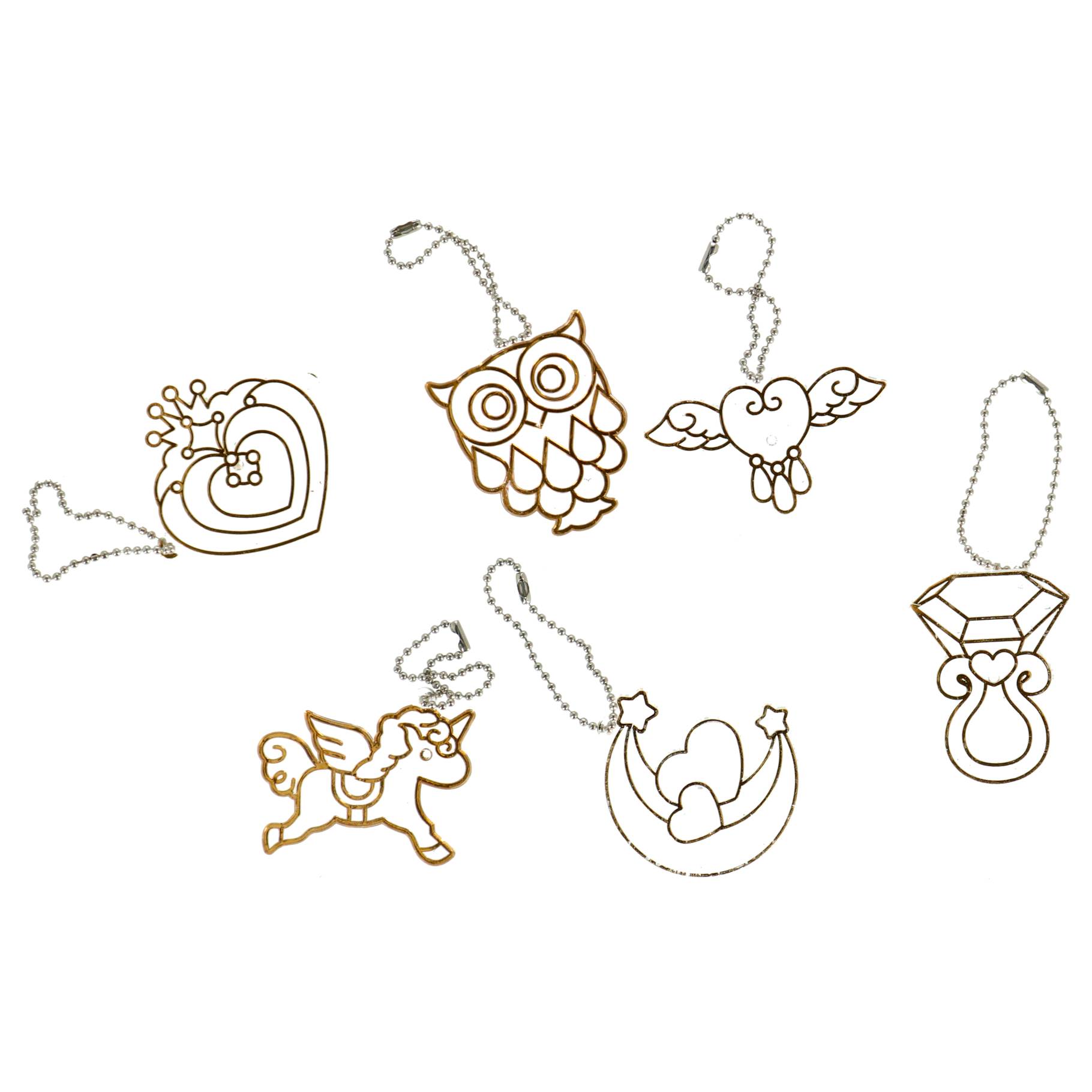 De kit bevat diverse materialen, waaronder een scala aan kleurrijke kunststof onderdelen. De afmetingen van de uiteindelijke sleutelhangers variëren per ontwerp, maar de onderdelen zijn eenvoudig te knippen, plakken en samen te voegen. Hierdoor is de set toegankelijk en gebruiksvriendelijk voor zowel kinderen als volwassenen.