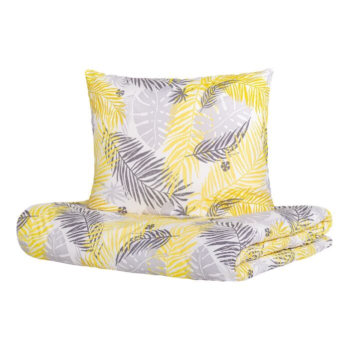 Door het gebruik van de fijnste materialen is slapen onder het BOTANICAL beddengoed uit de BANANA LEAF-collectie een waar genot voor het lichaam. De textuur is versierd met een bloemenpatroon van exotische palmen en de populaire monsters van dit seizoen. De set bestaat uit een kussensloop van 160 cm x 200 cm en twee kussenslopen. De set accentueert zachte en lichte interieurs, maar fleurt ook donkere slaapkamers op. Het beddengoed heeft een gewicht van 90 g/m2.