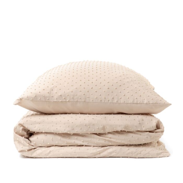 Het DOTI beddengoed onderscheidt zich door het eenvoudige maar elegante ontwerp. Het beddengoed heeft een beige kleur met kleine opgenaaide stipjes.