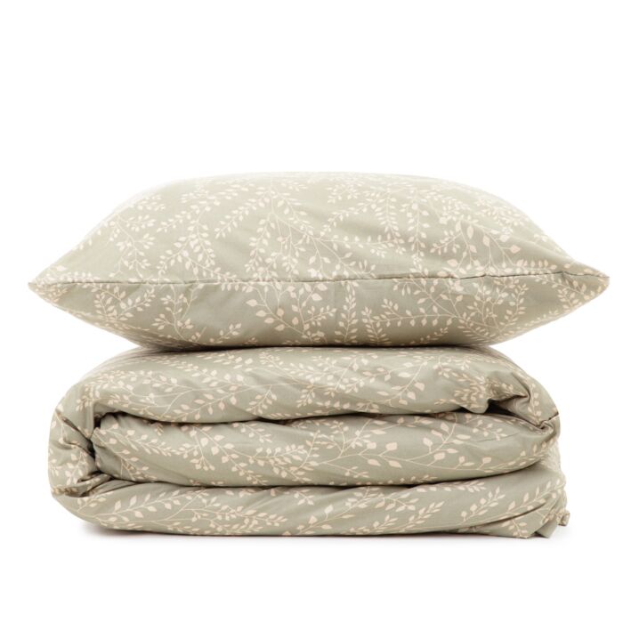De pistachekleurige achtergrond wordt verrijkt met frisse, organische patronen geïnspireerd op takjes met bladeren. Dit originele design zorgt voor een verfrissende en eigentijdse sfeer in uw slaapkamer.