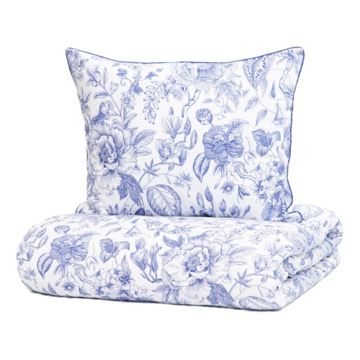 Een goede nachtrust is de sleutel tot een succesvolle dag. Zorg ervoor dat je je elke nacht luxueus voelt door je te wikkelen in het perfect zachte en lichte HOMLA MIRIEL beddengoed. Het weelderige blauwe bloemenpatroon is een blikvanger met een rijkdom aan prachtige vormen die een zalige tuinsfeer in je slaapkamer brengen. Het geheel is prachtig bekroond met decoratieve biezen, die getuigen van de zorgvuldig vervaardigde details.