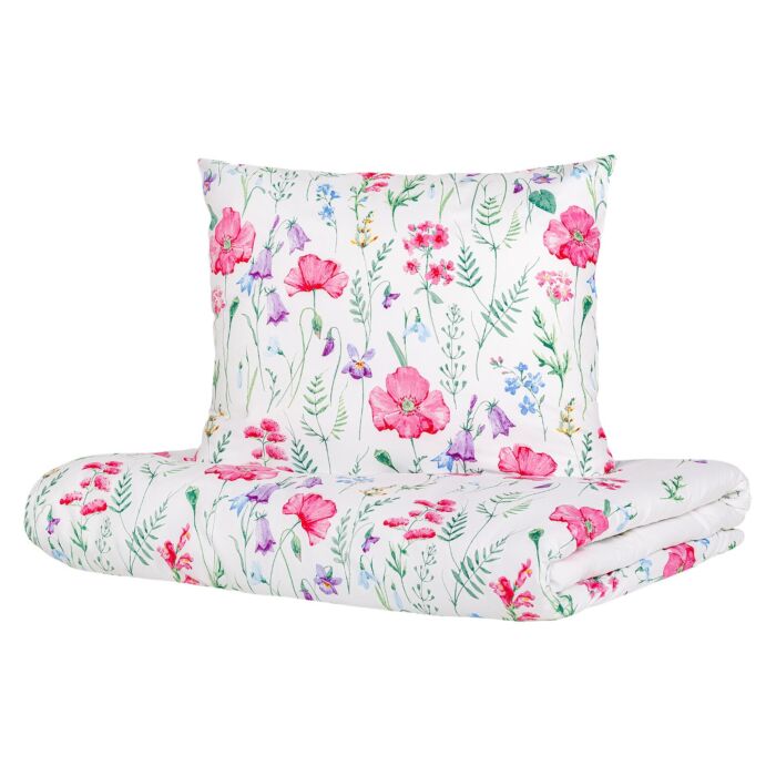 Het PERHONEN beddengoed heeft een fijne bloemenprint en is geschikt voor minimalistische slaapkamers met een witte of pastelkleurige basis.