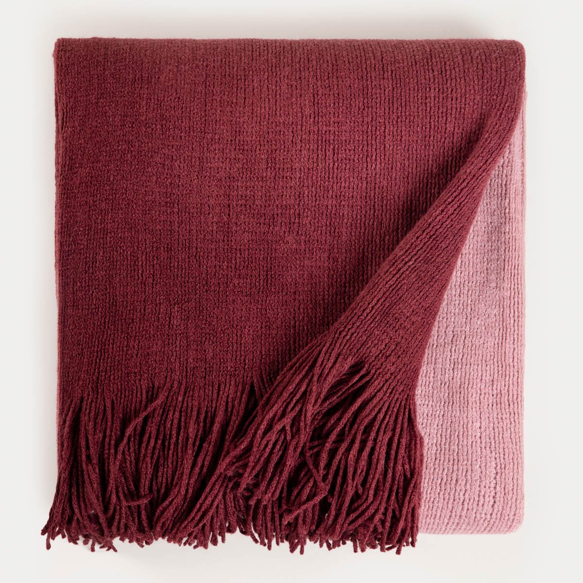 HOMLA BLANKET - Deken - FINNS - Burgundy Ombre Effect met Fringe - 130x170 cm