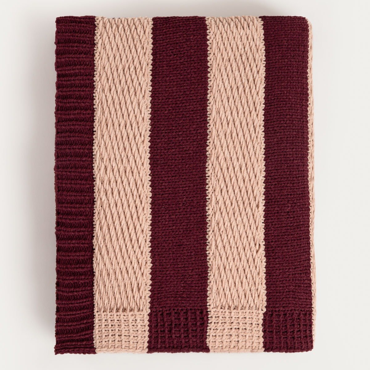 De RUDENS-deken houdt je niet alleen warm op herfstige en winterse avonden, maar voegt ook een sfeervolle aura en een vleugje seizoenscharme aan je interieur toe. Het elegante burgundy gestreepte patroon creëert een warme herfstachtige accent dat perfect past in elke setting - van modern tot traditioneel. De zachte, aangename stof omarmt het lichaam en biedt comfort.
