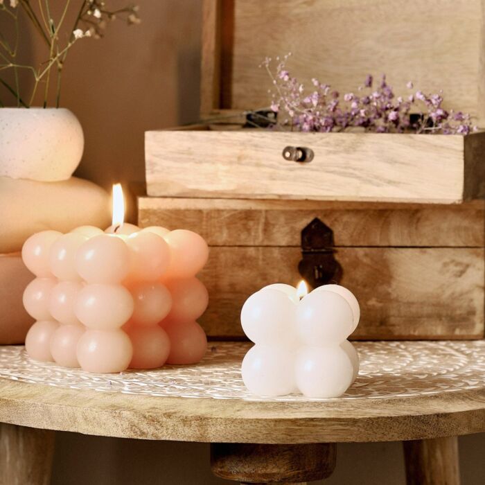 HOMLA | Bubble Kaars | 6x6x6 | Ecru | Geurloos