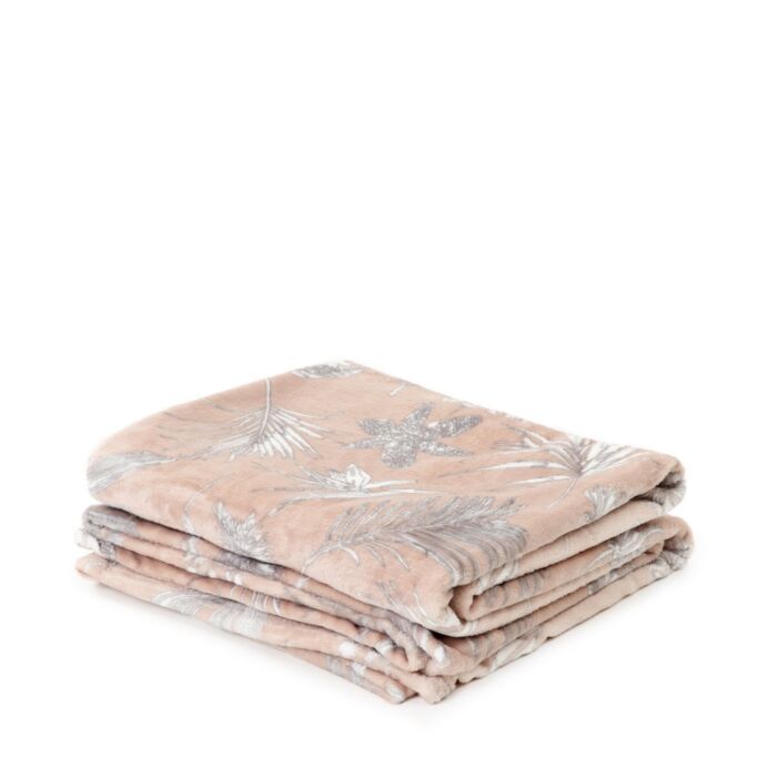 De ASTEN deken wikkelt je in zijn zachtheid en zorgt voor een lange en ontspannende slaap. Het beige ontwerp is versierd met witte planten en grijze contouren.